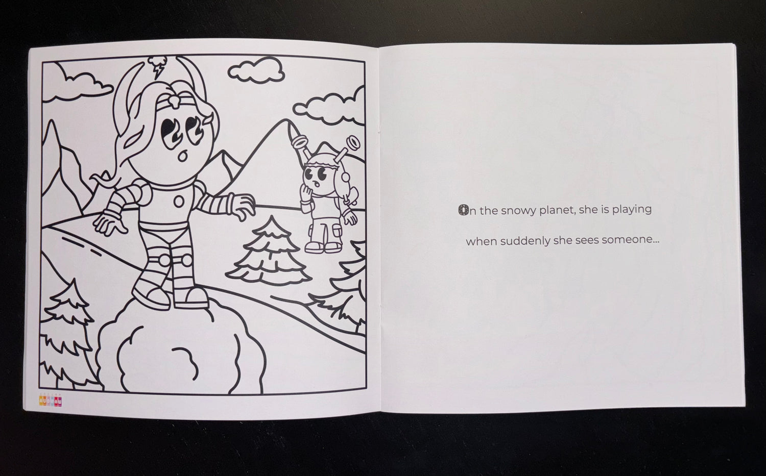 In this magical scene, Nova and Cosmo explore the snow planet, surrounded by icy landscapes and shimmering stars. ❄️✨ This moment captures the wonder and adventure that awaits in the pages of our coloring book. Get ready to join them on their cosmic journey! 🌌